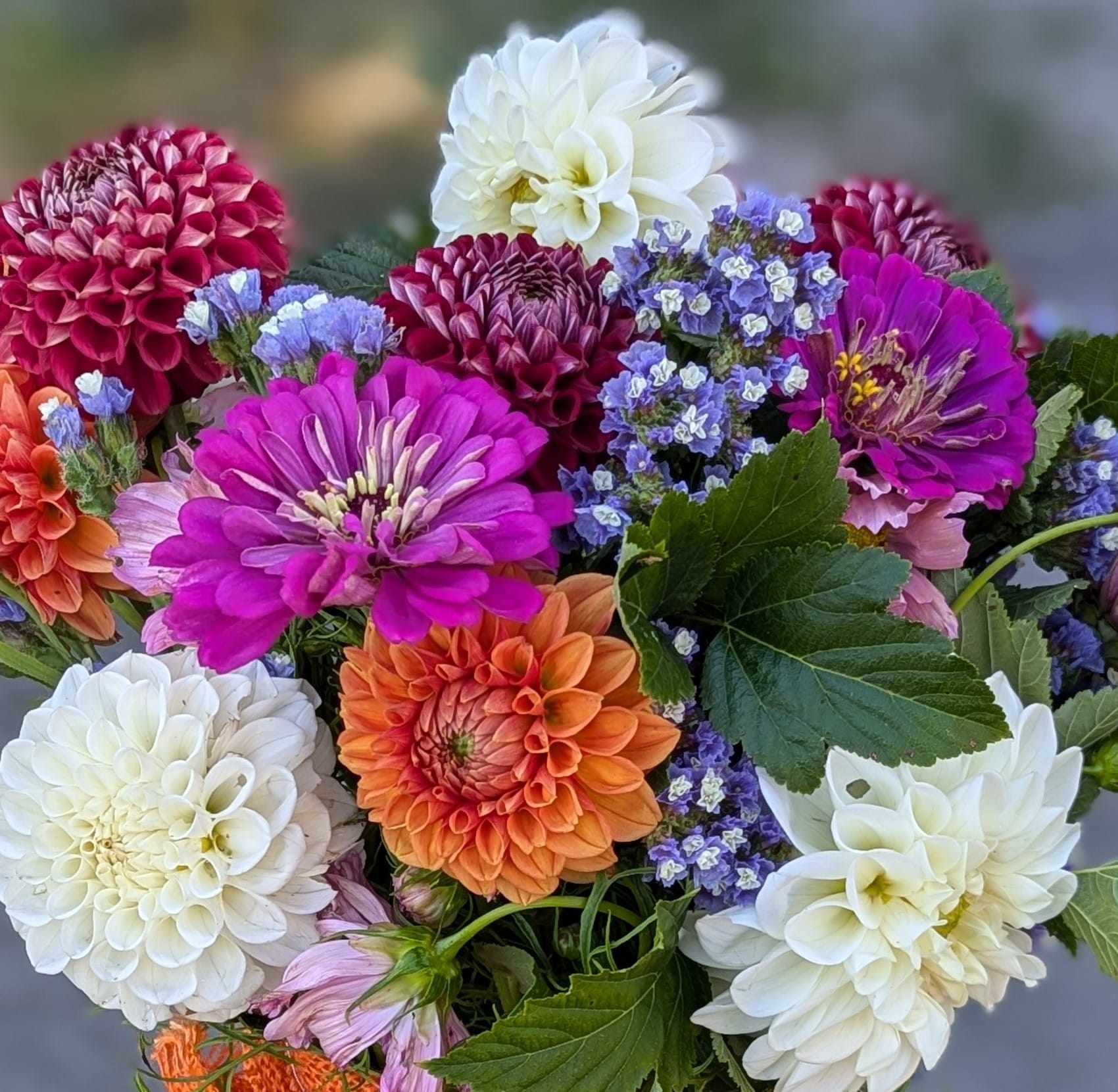 flowers close up 2 zinniz and hahlias